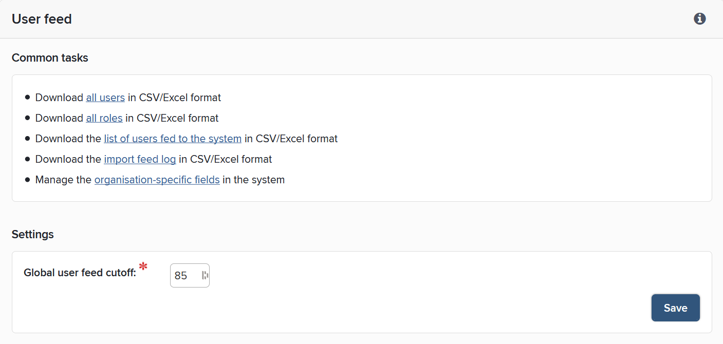 Most user processes, such as the creation of new users and the deactivation of users who leave your institution, will be carried out automatically using the data in the user feed supplied by your institution’s HR system. However, a small number of users may not appear in the user feed and will need to have their details managed manually by System Administrators.