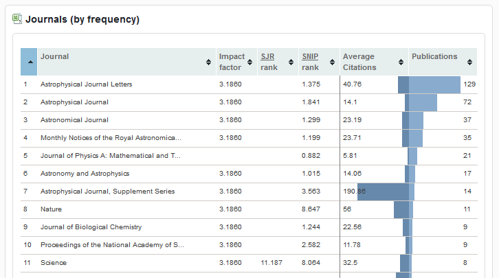 Table: Journals by frequency