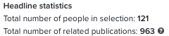 This means that the 121 people have in total 963 relationships to the publications in the period selected.