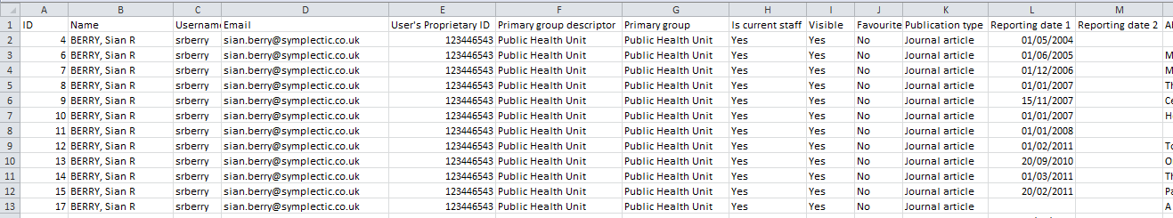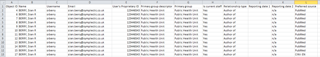 This is a simple report format that contains one row for each user-element pair, using the information from the user's 'preferred' source. It will contain all the same element details as the '[object] by data source' report, but only a minimal amount of user information. This will also include user options such as whether a publication is visible or a favourite.