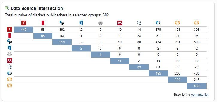 This table shows the intersection of all publications across all sources: