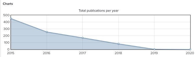 The data in this table does not include publications with no reporting date, only publications with the relevant years recorded in the reporting date field.