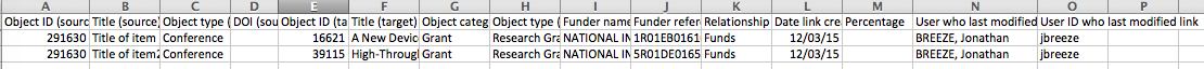 This report will provide all the links between elements reported in the '[Object] by data source' report and your system's users. So, if two users have co-authored a publication, then there will be two rows in the 'Links' report, one to show the link to each author.