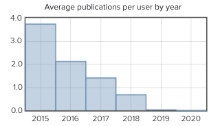 Chart: Average publications per user by year
