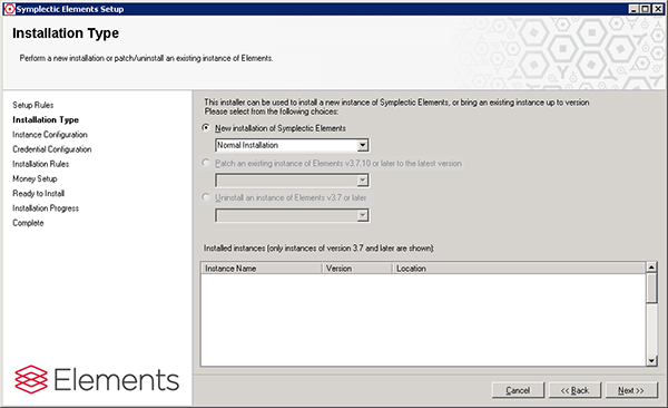 For a fresh install of Elements you should select the “New installation of Elements” radio button, and then click next.