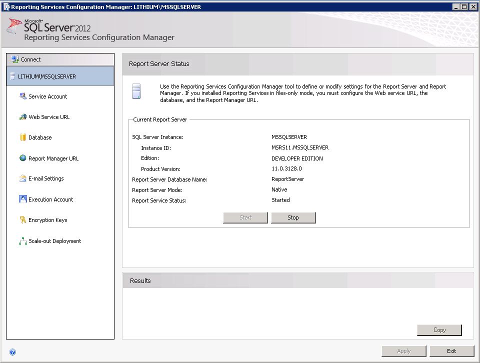 Configuration of the SSRS Report Server is done via the Reporting Services Configuration Manager (for simple settings) and the 'rsreportserver.config' configuration file (for advanced settings). The Configuration Manager will be sufficient for this guide; depending on your network configuration and setup you may need to alter some of the advanced settings after completing this guide.