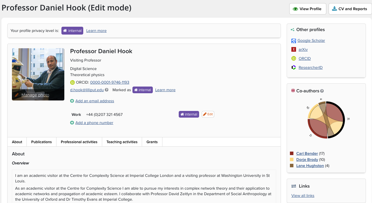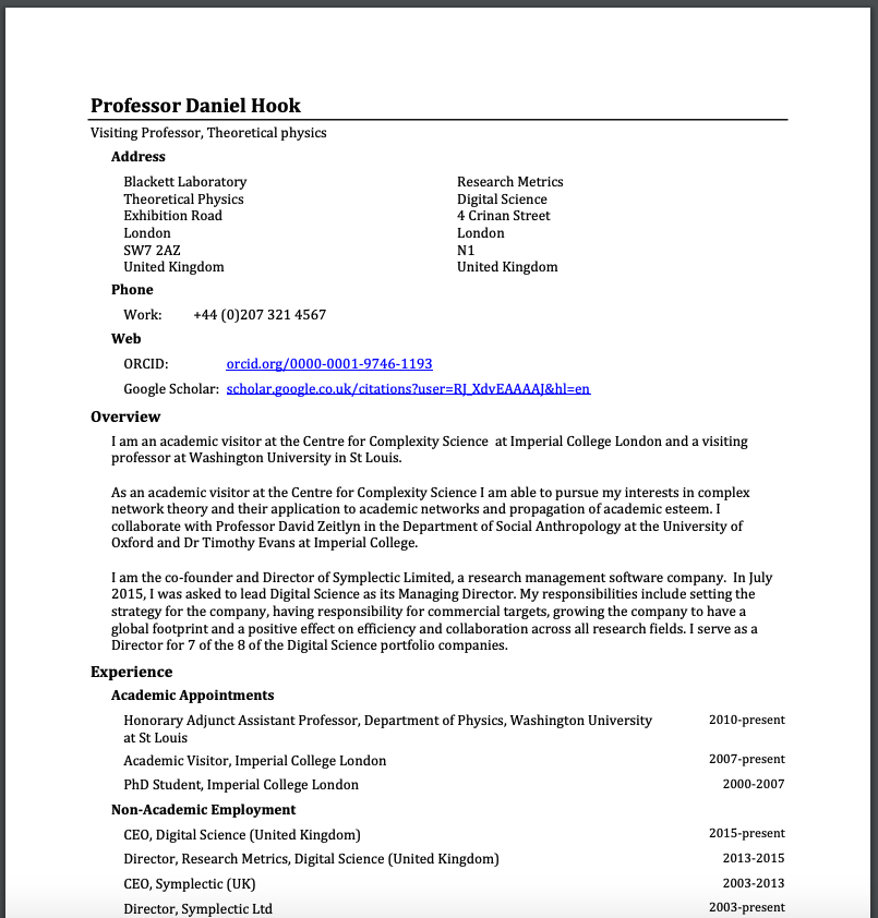 Test export of CV and Biosketch from the Elements website