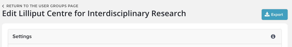 Group Reports: Select the group(s) who can use the report. Once the report is enabled, navigate to the group page via System admin > Users & groups > Group management > Manage groups. On the group settings page, you will see the option to export the report on the top right hand section of the page. Note: Only users with appropriate access to the group’s data will be able to export the report (e.g. Statisticians, Research Managers, System Administrators, etc).