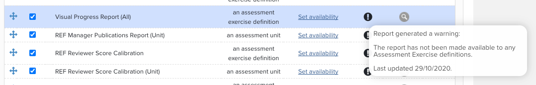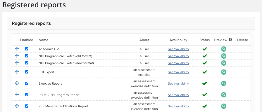 Note: The registration of default Symplectic reports cannot be altered, although you can still enable/disable them and configure their availability.