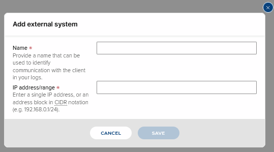 Specify external systems that are allowed to use the API.