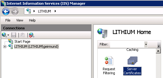 In IIS select Server Certificates to find the details of a valid SSL certificate on the server.