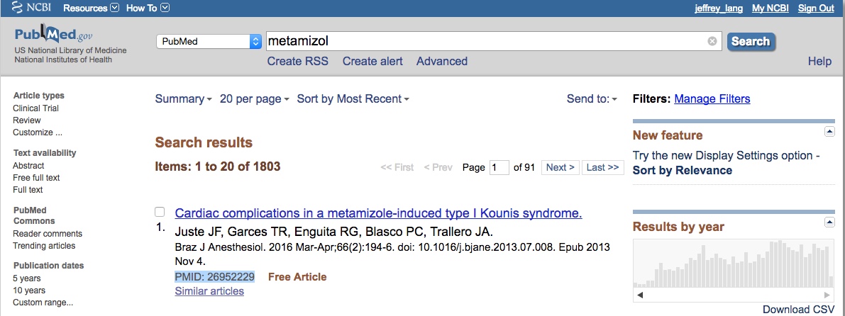The 'PMID' number is usually 8 digits long (do not include the phrase "PMID" in the ID field within Symplectic Elements). PubMed IDs are found in search result lists: