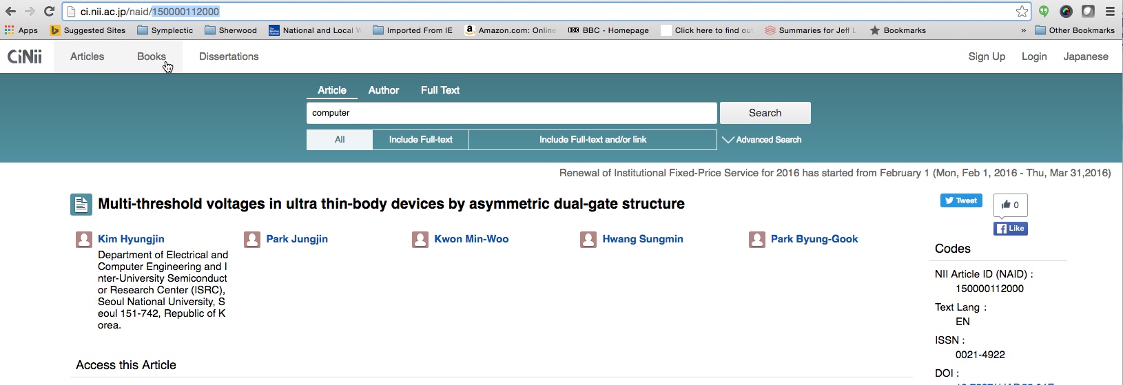 The CiNii databases show their ID numbers in the URL of each 'full details' screen. It will usually be a simple number. In CiNii, use the reference in the URL: