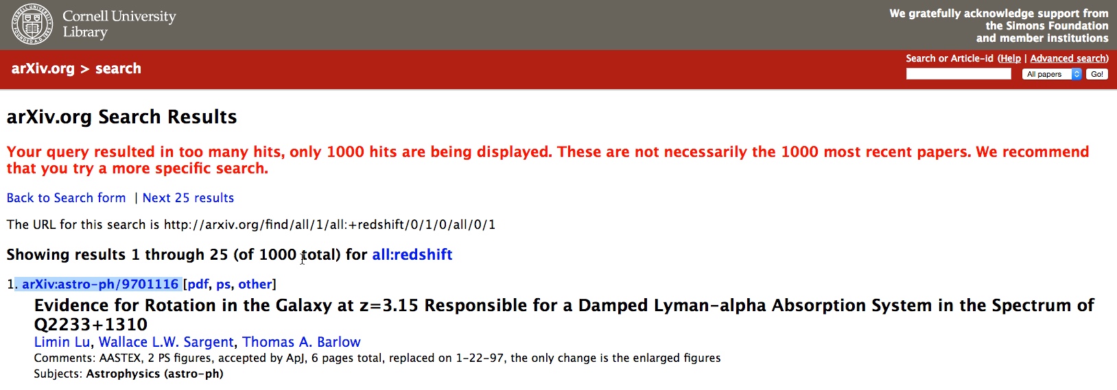 The ArXiv web interface shows IDs next to each record in the search results, as well as prominently on each individual publication screen.