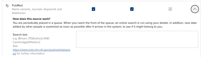 This can be useful, for example, if you have a stored 'advanced' search query for one of these databases, which you know accurately brings up all your publications.