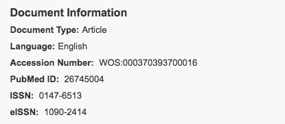 The Web of Science Accession Number displays in the citation record. The Accession Number for the record shown below is "000335672600003" (do not include quotes or the word "WOS" in the ID field within Elements).