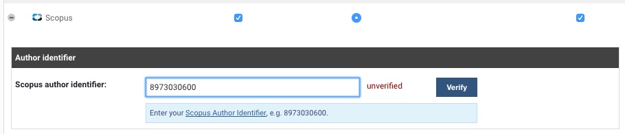 For Scopus, SSRN, and Web of Science, there is a verification process whereby you will be presented with an abbreviated list of recent publications for your review. If you click the Verify button, all the documents in that database that have been tagged with your identifier will be harvested and placed in the Accepted folder rather than the Pending folder.