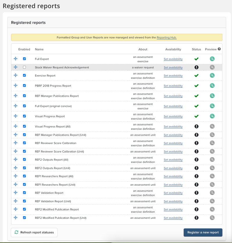 Register Reports for Assessment