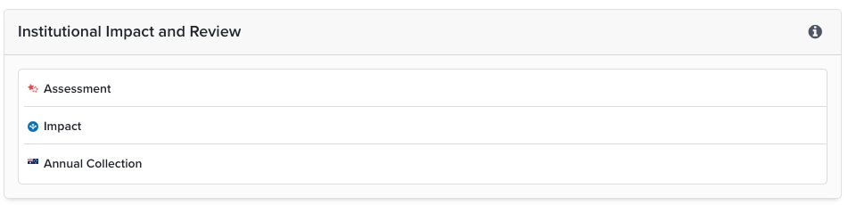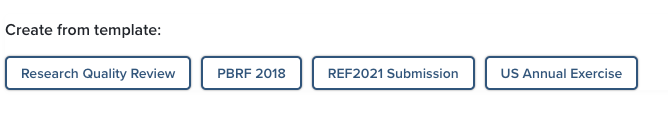 This guide will assist you in creating an Assessment Exercise definition using the pre-defined templates. These templates can be used to support periodic institutional assessments such as the PBRF (NZ), REF (UK) and a Research Quality Review for internal review exercises. You can change components of the template configuration to suit your institution.