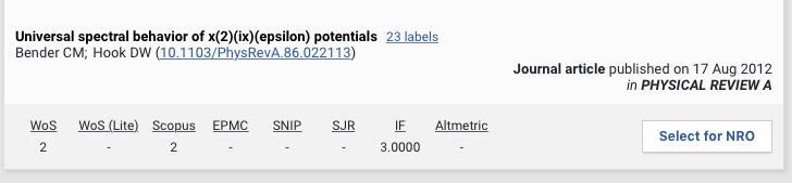 Publication - DOI if absent from the highest data source precedence; any labels that are applied; citations and journal statistics; Elements publication type.
