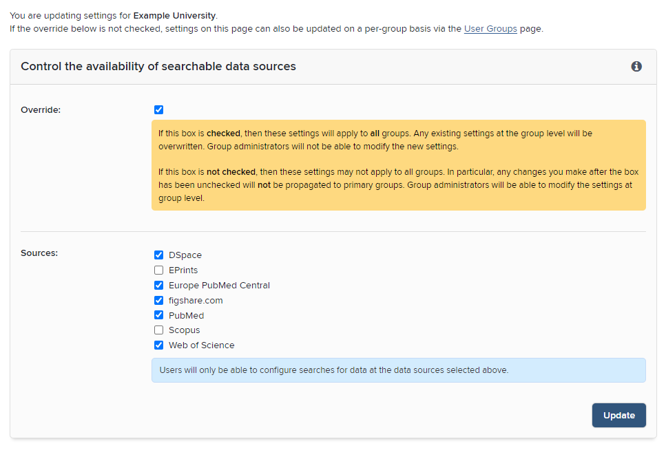 Please note that currently, unlike for other data sources, only system administrators are able to alter the state of the checkbox shown above