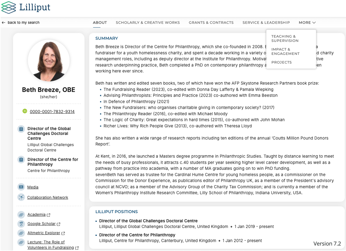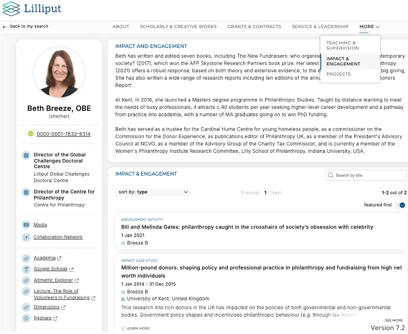 What are tabbed information pages? | The tabbed information pages on Discovery profiles include a list of data for a particular Elements data categories i.e. outputs, grants, teaching activities, etc. Optionally, a custom narrative field can be configured and added to information pages (except for publications). |