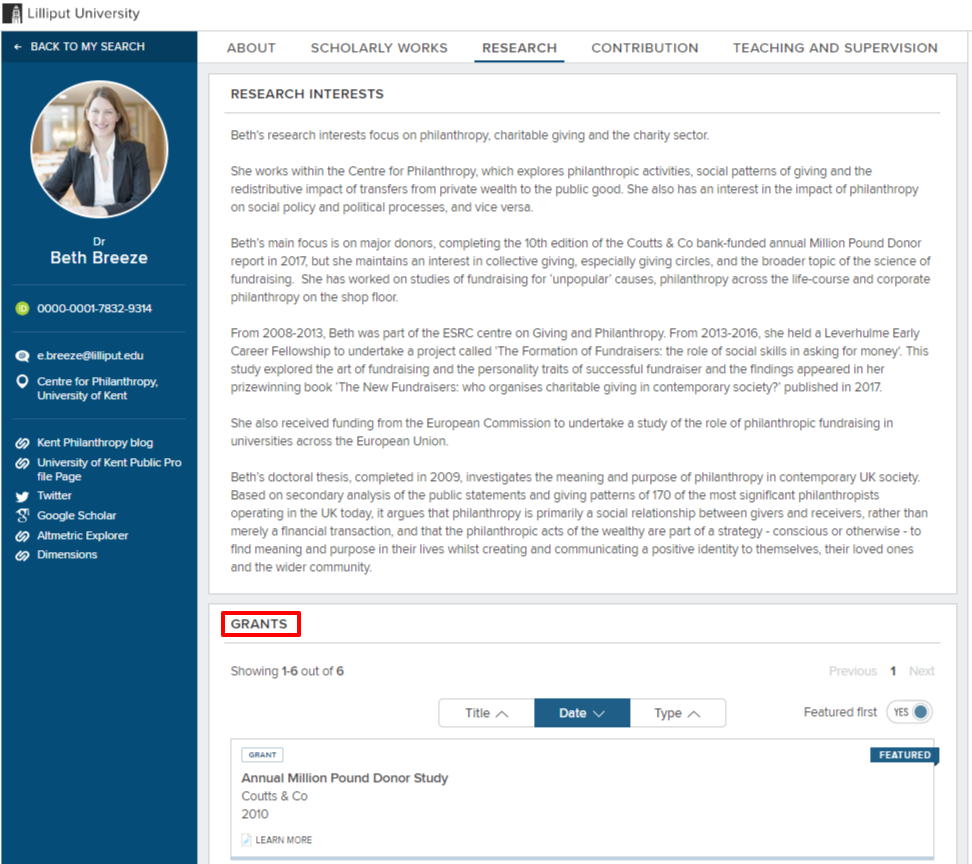 Renaming the list headings on Publications, Grants, Professional and Teaching