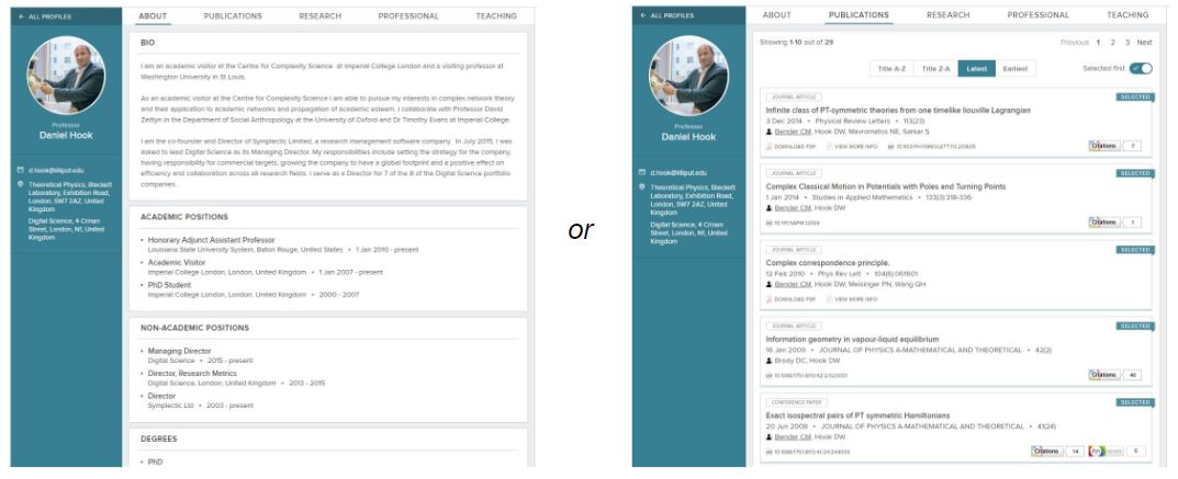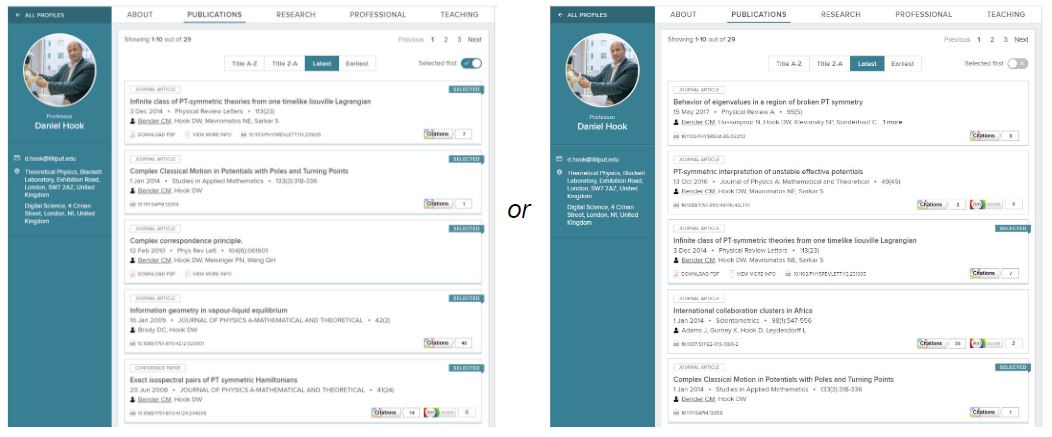 This can be applied to the following Tabs: Publications, Research, Professional, Teaching