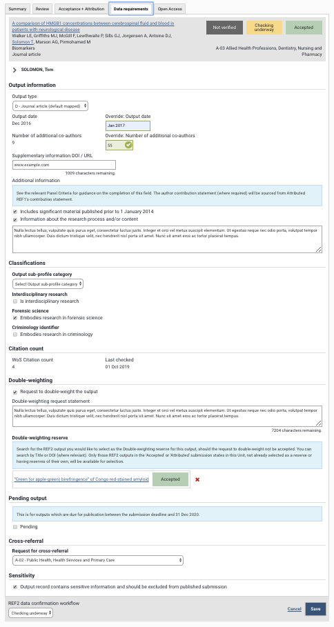 Visible only for outputs in UoAs 1-9, 11, and 16.