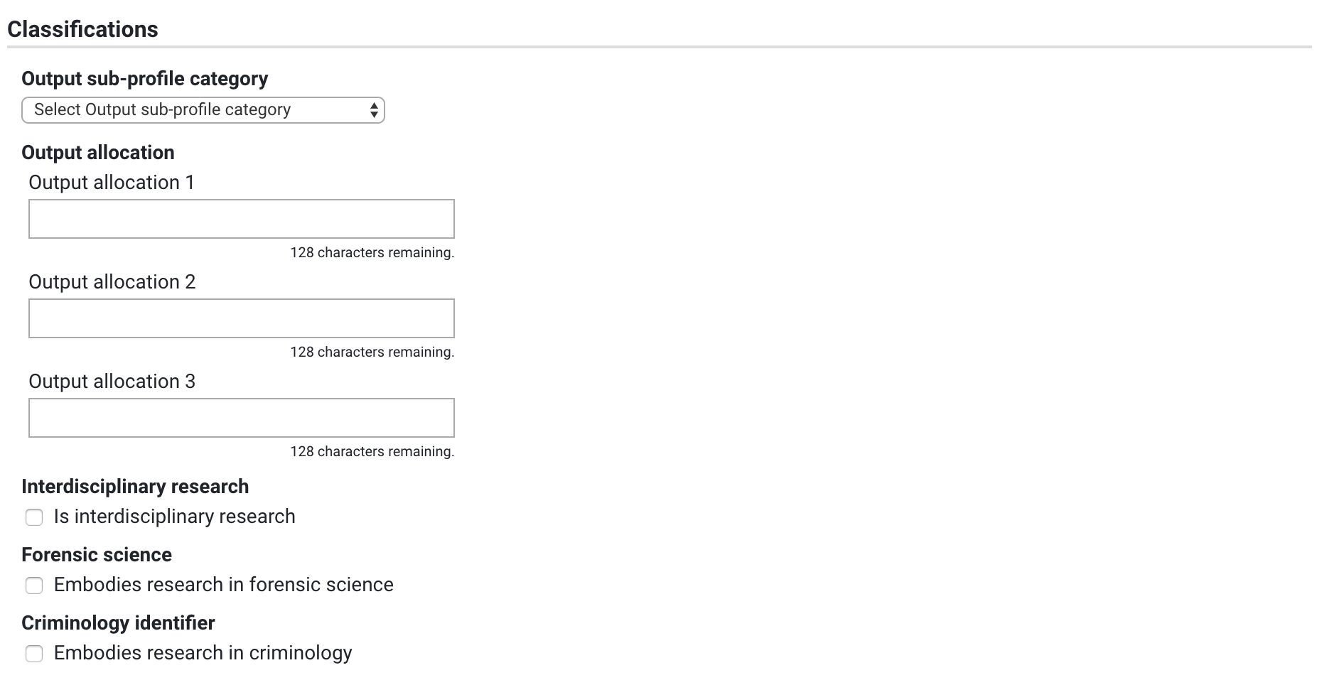 Interdisciplinary research | Flag to indicate if the output embodies interdisciplinary research | |
