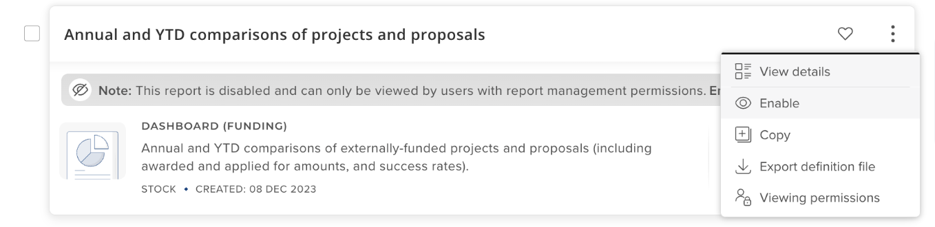 Now that the dashboard is designed and its permissions have been configured, you are in a position to "go live" with the dashboard, by checking the Enable button next to the dashboard entry on the Dashboards page.