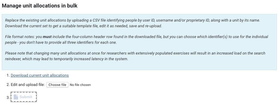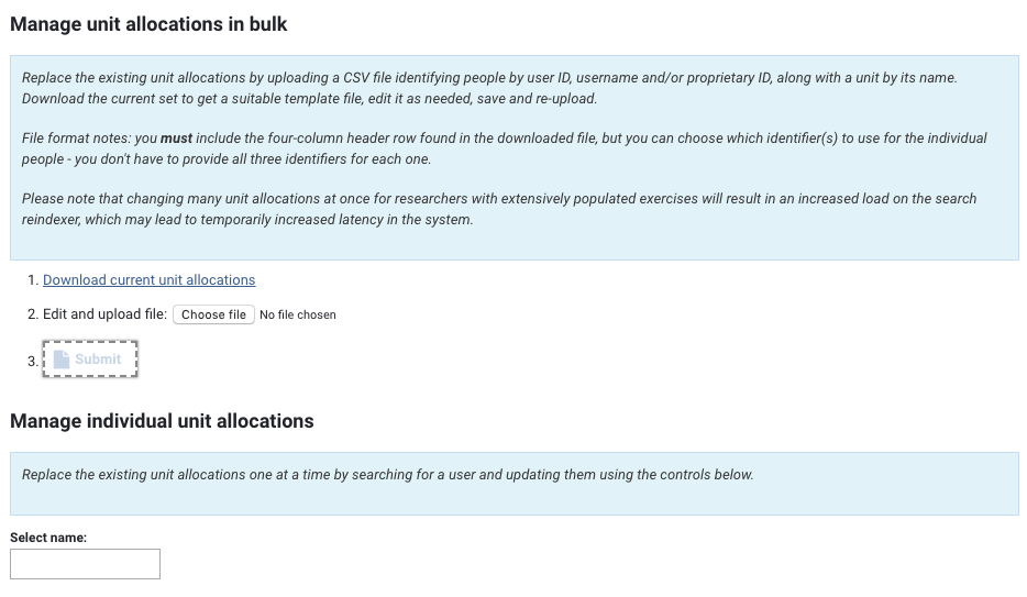 If you want to simply change a small number of users' unit allocations, you may wish to simply do these individually using the 'Manage individual unit allocations' function.