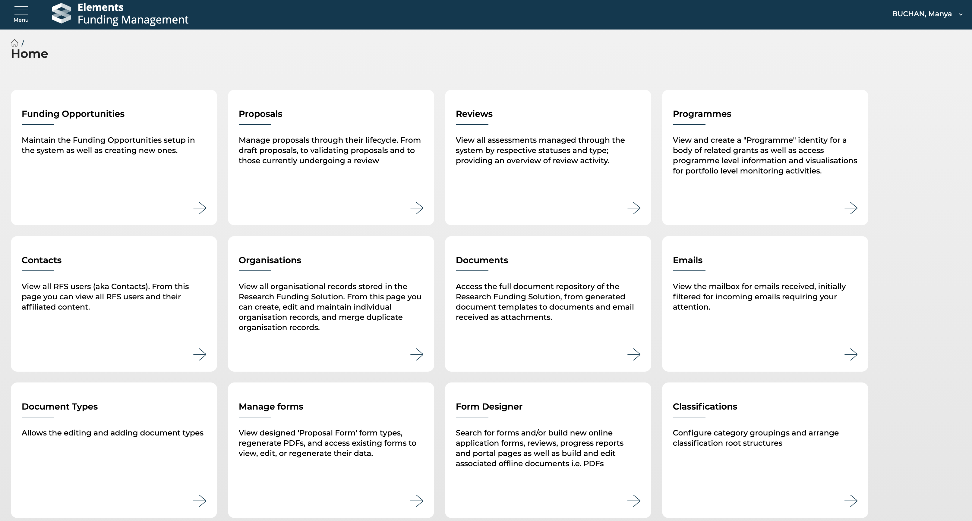 The Awards Management Funding Management Console is where relevant Awards Management users can manage all aspects of the funding management space, including: