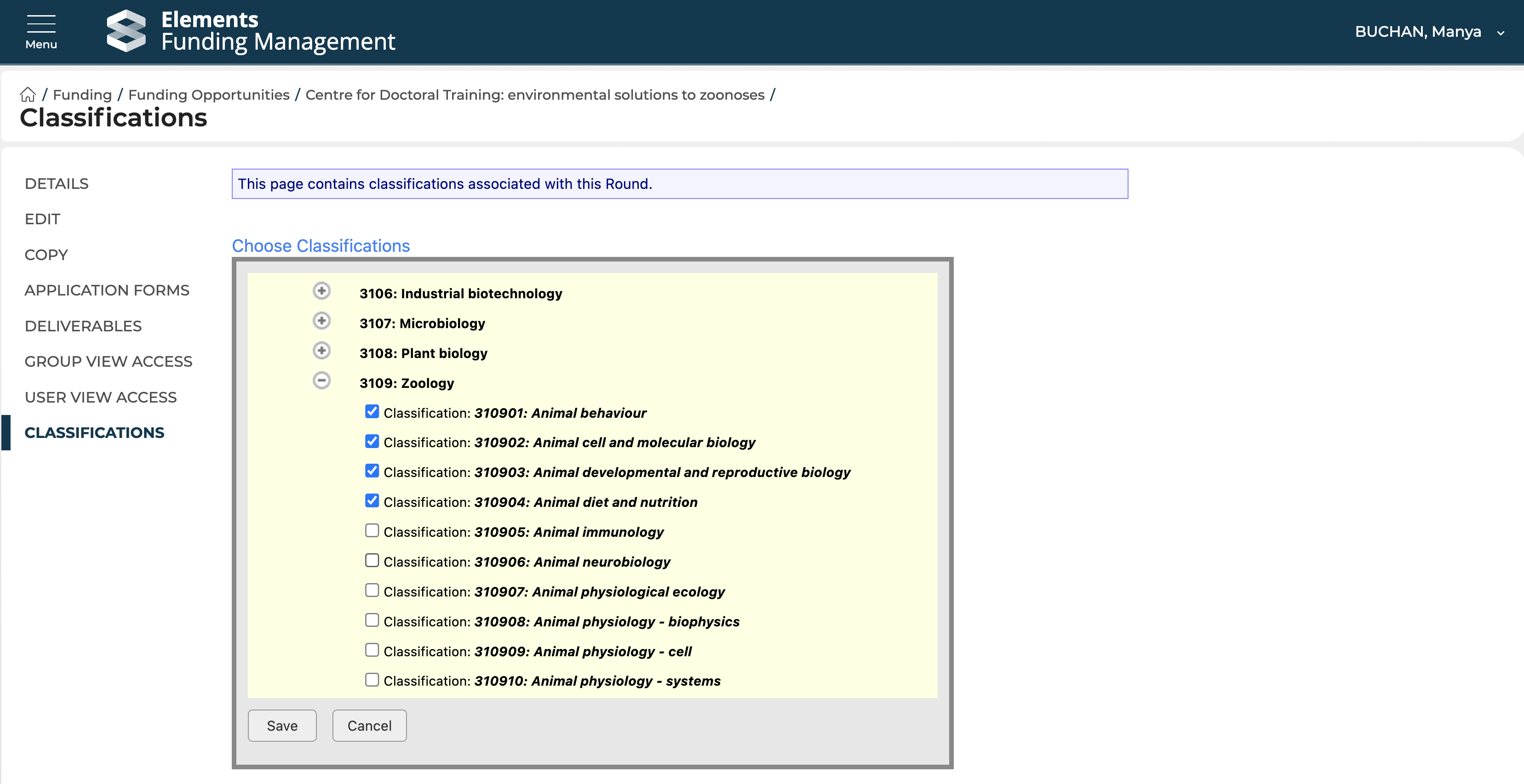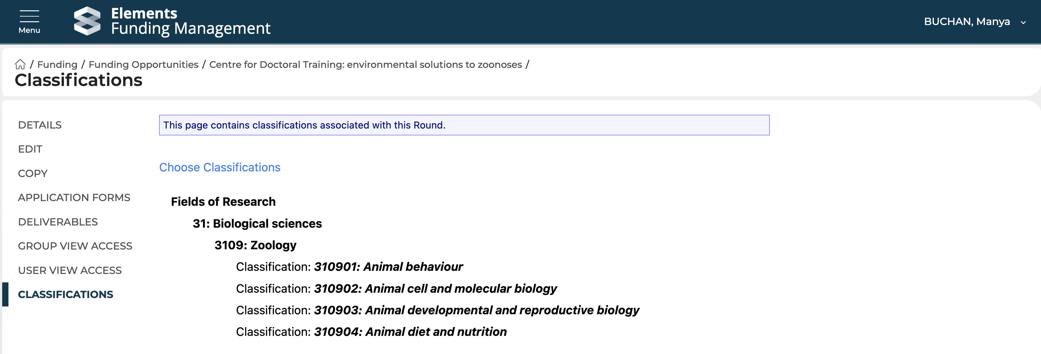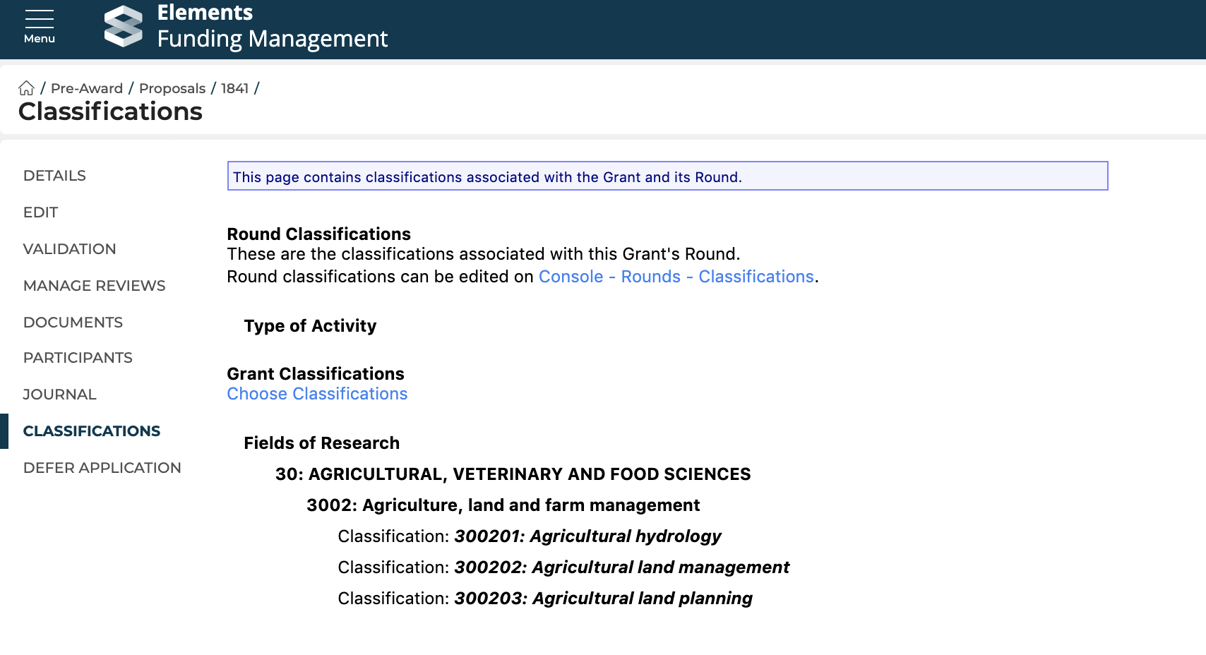 Classifications in Awards Management enable individual objects (e.g. Funding Opportunities, Proposals / Projects, Organisations) to be tagged with any number of values from a set list.