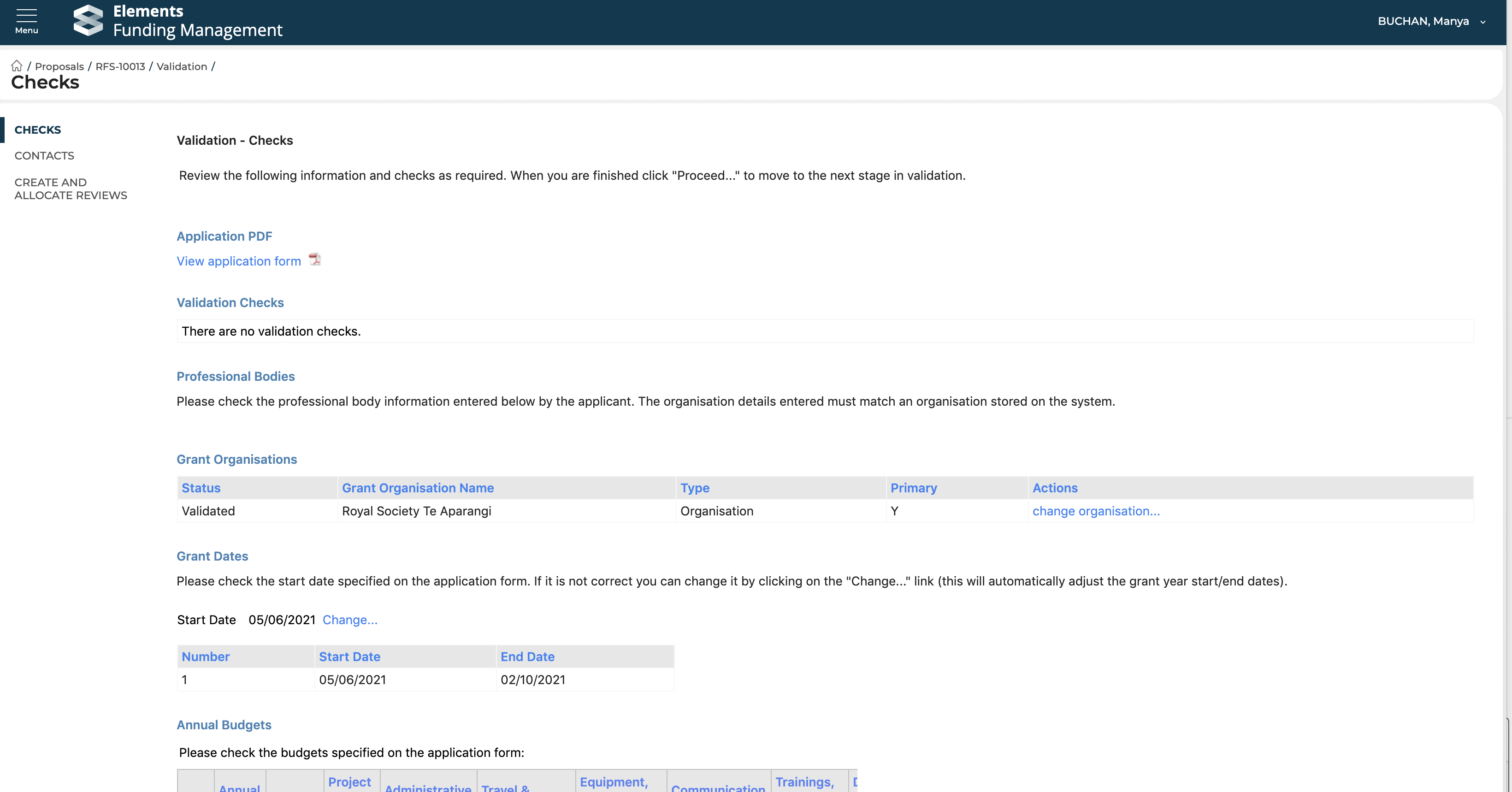 To validate a proposal, open the submitted Proposal and navigate to the 'Validation' tab. There are then 3 screens to proceed through: