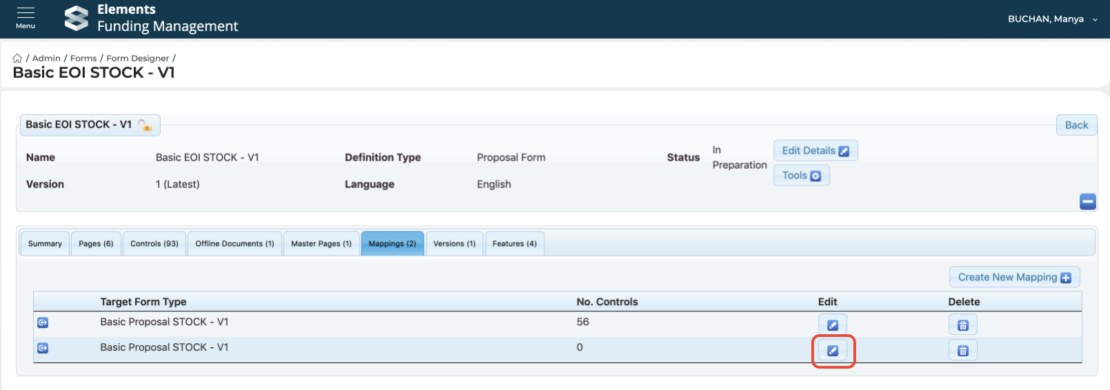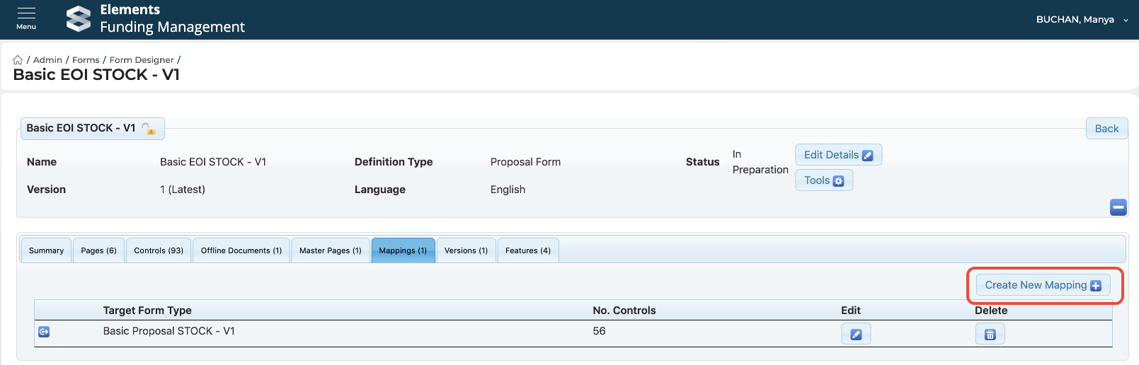 Go to Funding Management Console > Admin > Forms > Form designer, and select the form you wish to create a mapping from. Then navigate to the 'Mappings' tab, and select 'Create new mapping':