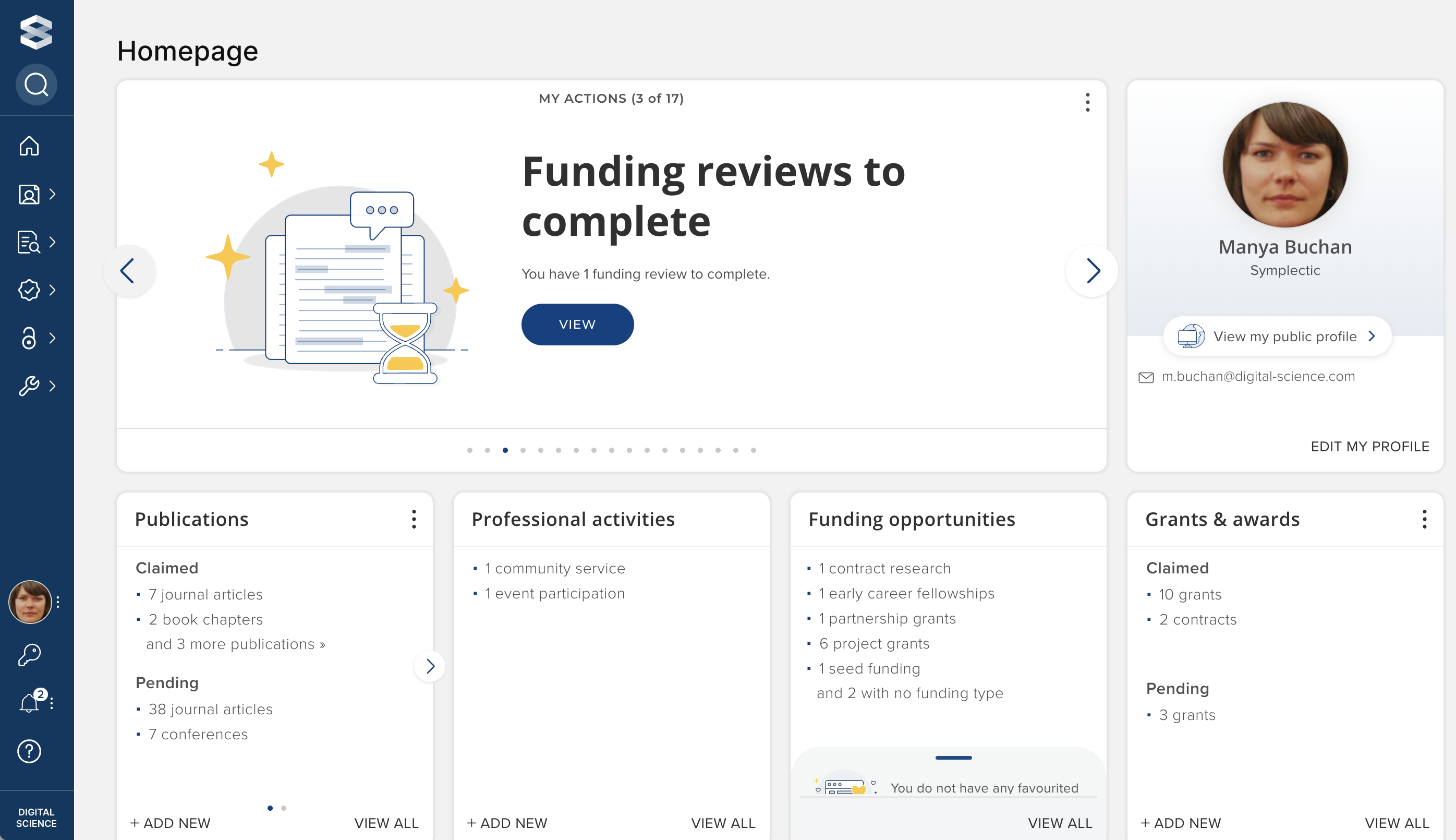 Notifies the user of new funding opportunities that have been published since they last visited Elements