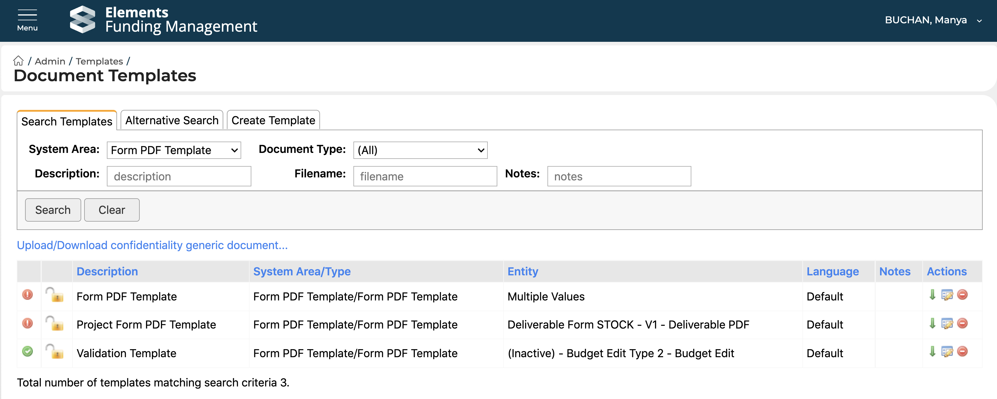 System Administrators and Research Funding Administrators can create and edit Document templates, enabling you to: