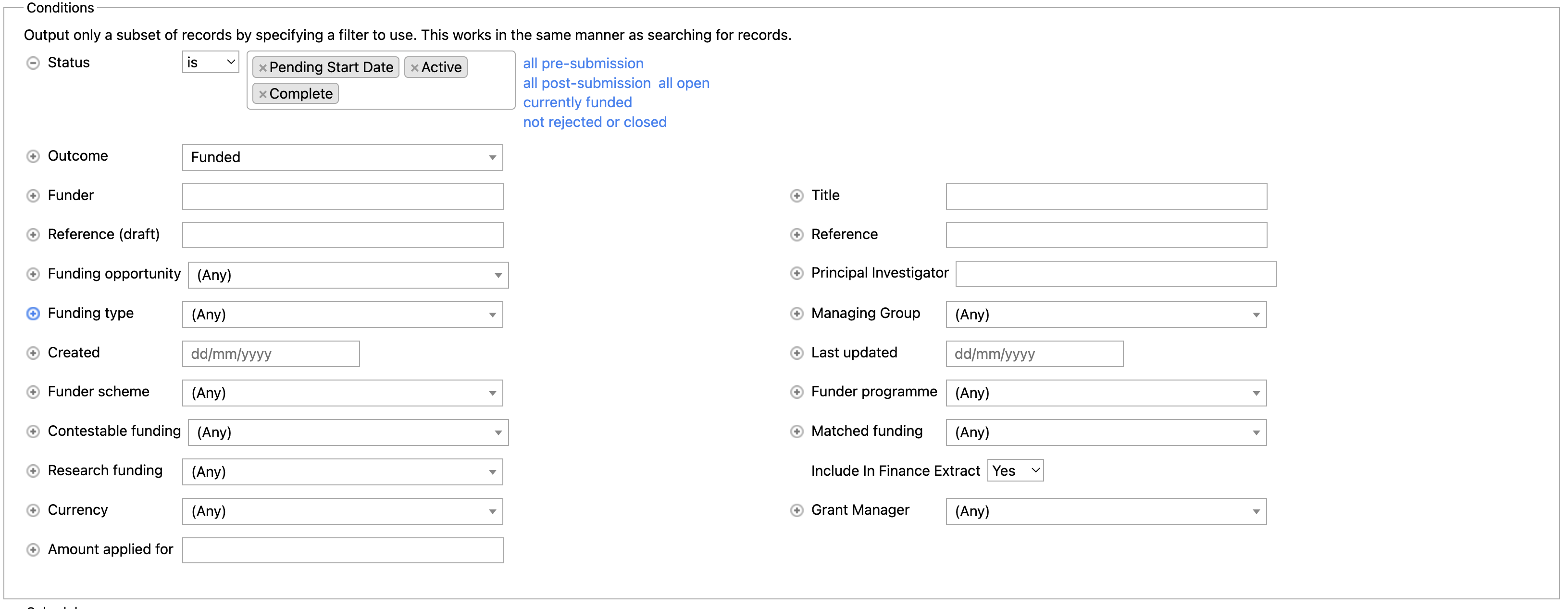 The facility to export this Project data and configure the relevant settings is available to System Administrators and Research Funding Administrators.