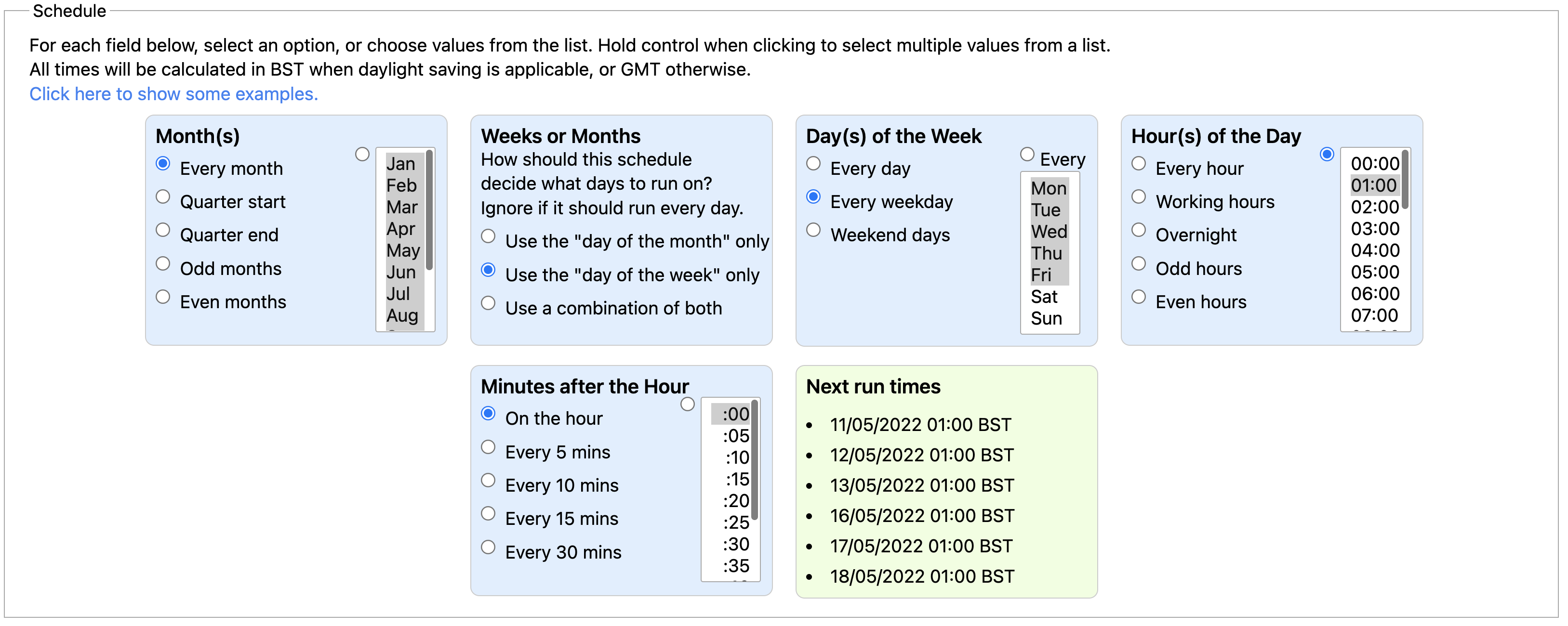 For the three Differential exports, in the 'Schedule' section, select the desired frequency of the scheduled job (by default, the job is scheduled to run every weekday at 1.00am). All three exports should be scheduled to run at the same time.