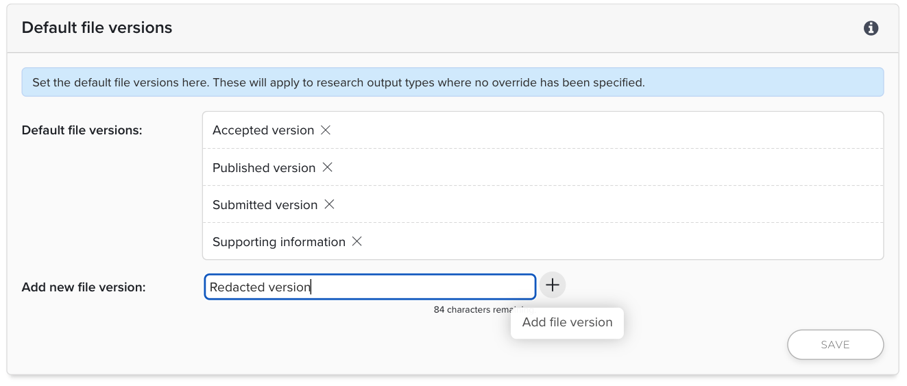 On this page administrators can configure the list of available file version names at both a system-wide level and on a per-publication type basis.Default file versions
