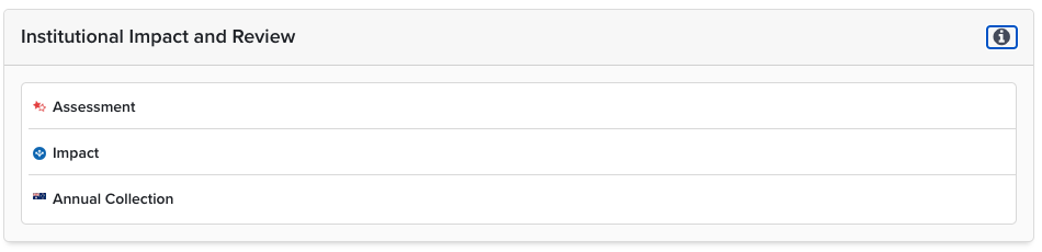 The Assessment Module supports the creation of bespoke workflows and the ability to collect information from users for the purpose of review, evaluation and reporting. The Assessment Module can be used to support a wide range of activities including institutional assessments - such as the PBRF (NZ), REF (UK) and other internal review processes such as annual faculty activity reviews and promotion and tenure processes.