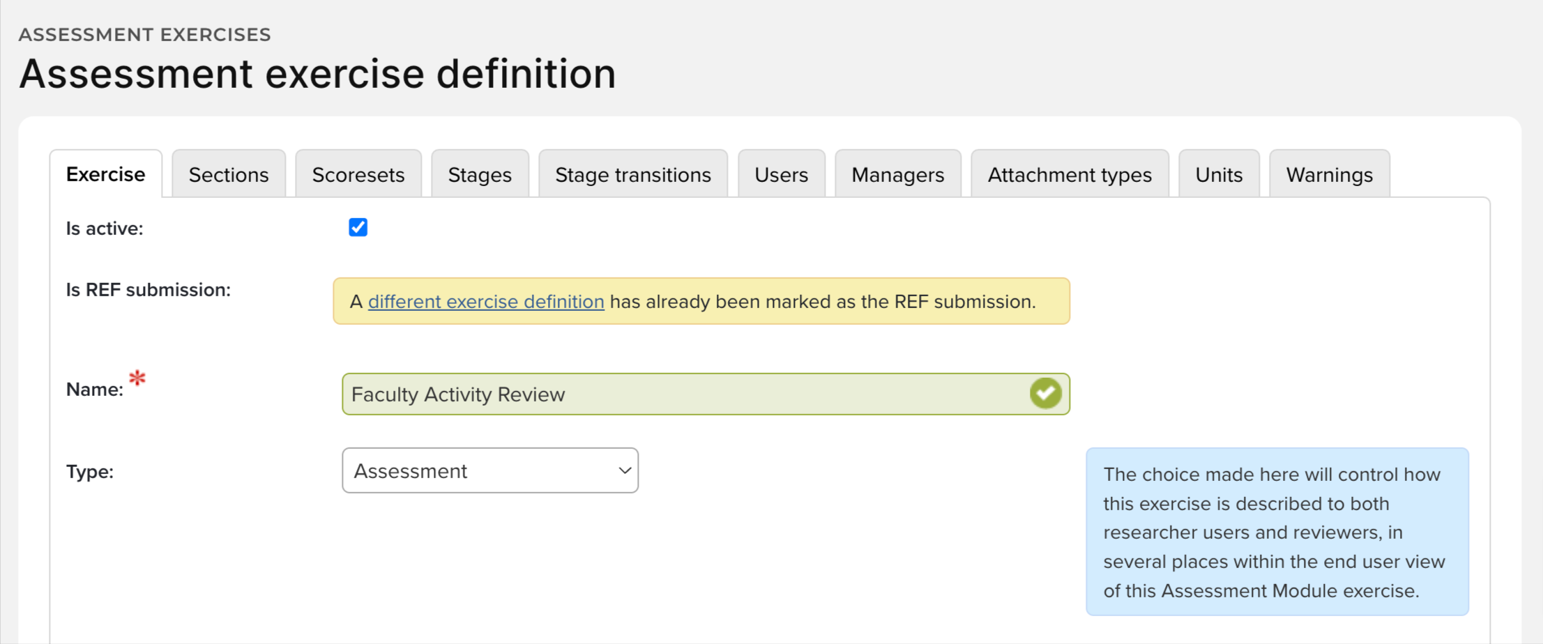 Is REF submission - This determines whether or not this Exercise is being used to generate the REF submission. This is only relevant to UK Clients using Elements REF functionality.