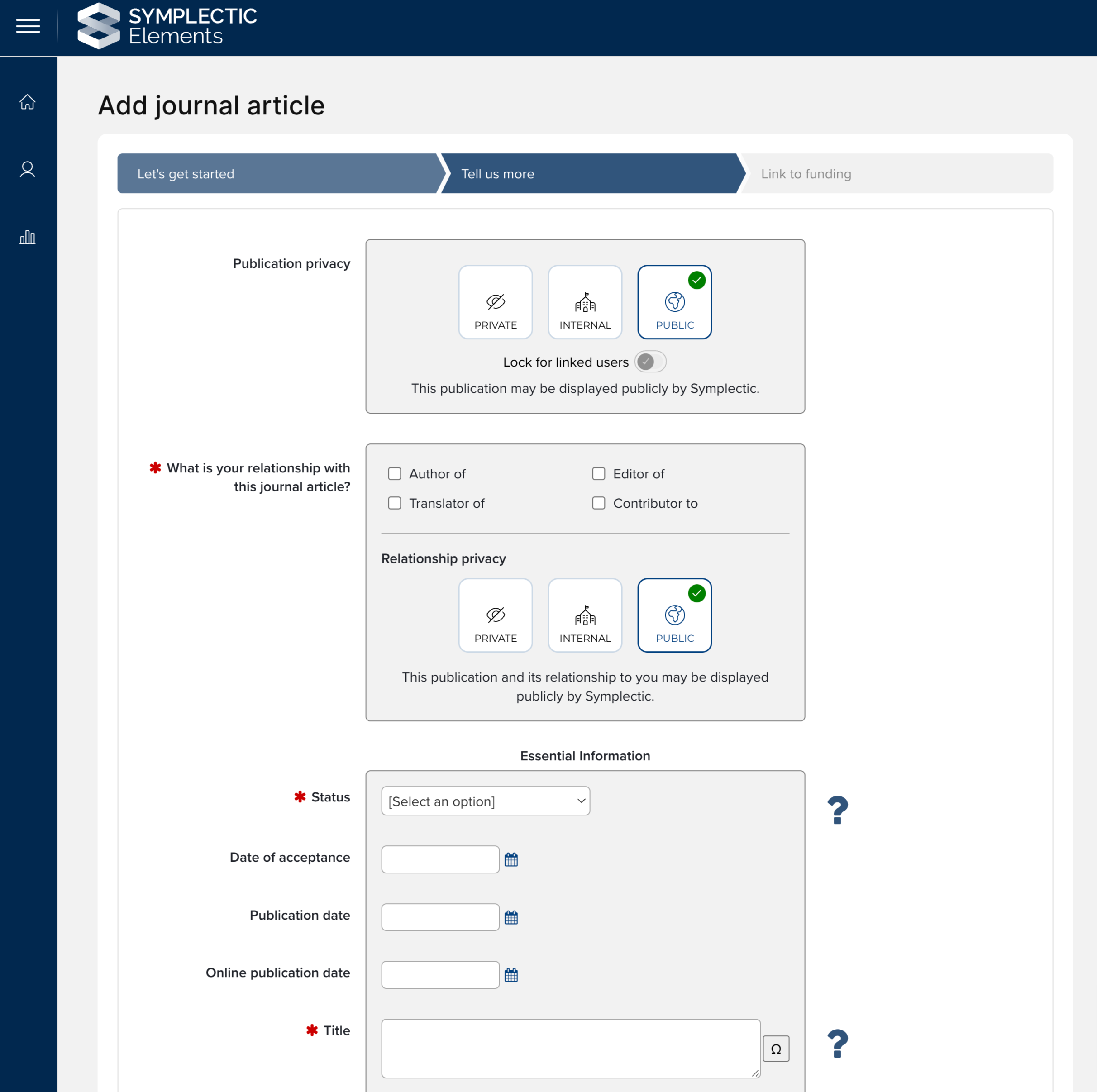 In order to provide users with greater control and visibility across the privacy settings for their works, privacy controls will now appear on the edit form, prompting users to review and if needed adjust the work’s privacy settings whilst manually adding it to the system. This new functionality removes the need for users to go and view the work after creation to confirm the privacy levels associated with the work, providing users with greater transparency and saving them time.