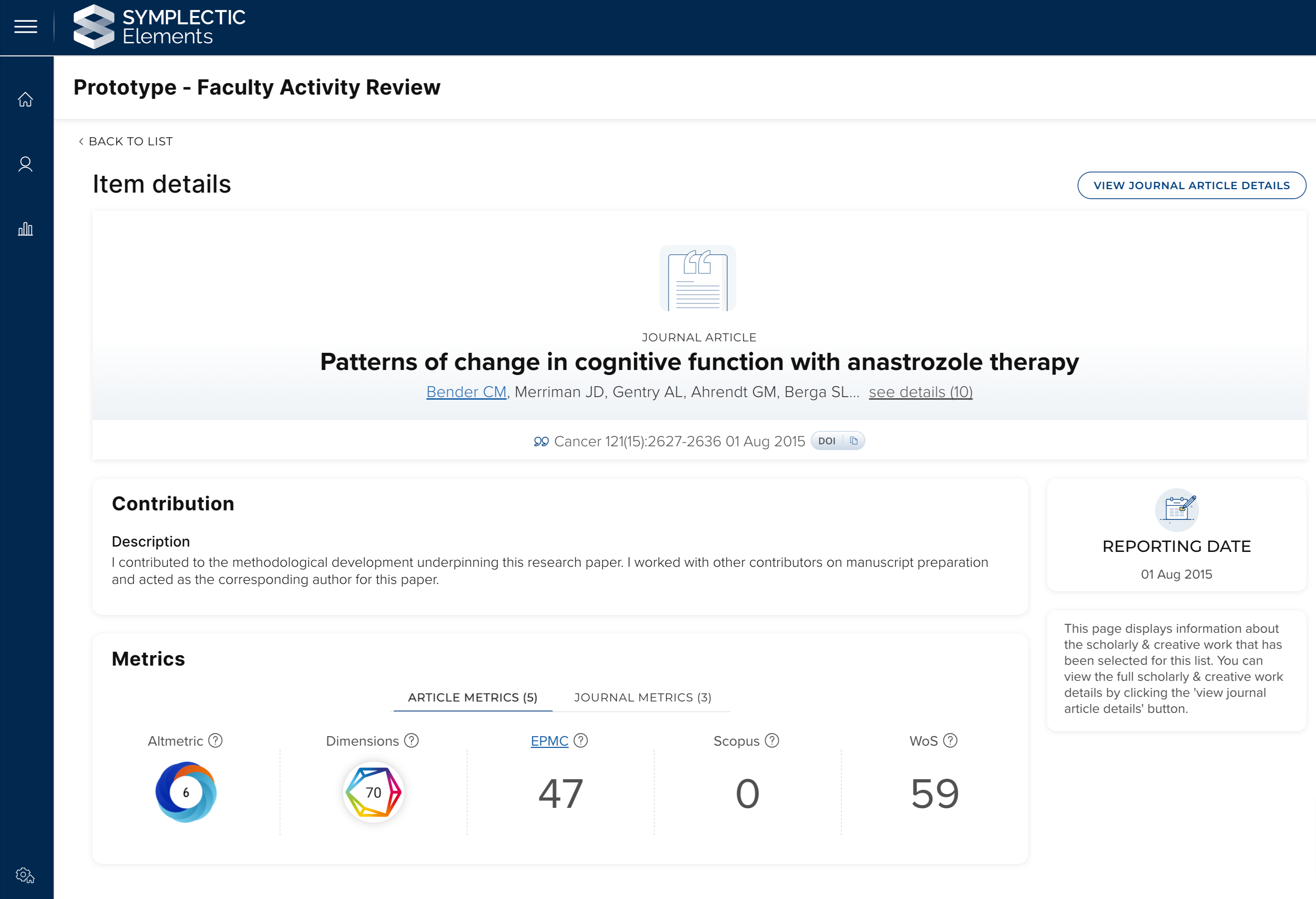For clients already using Dimensions as a data source, the FoR labels will automatically start being added to your Elements instance the next time records are refreshed following your upgrade to Elements v6.11. If you are not yet using Dimensions as a data source and would like to find out more, please contact Symplectic Support for assistance.