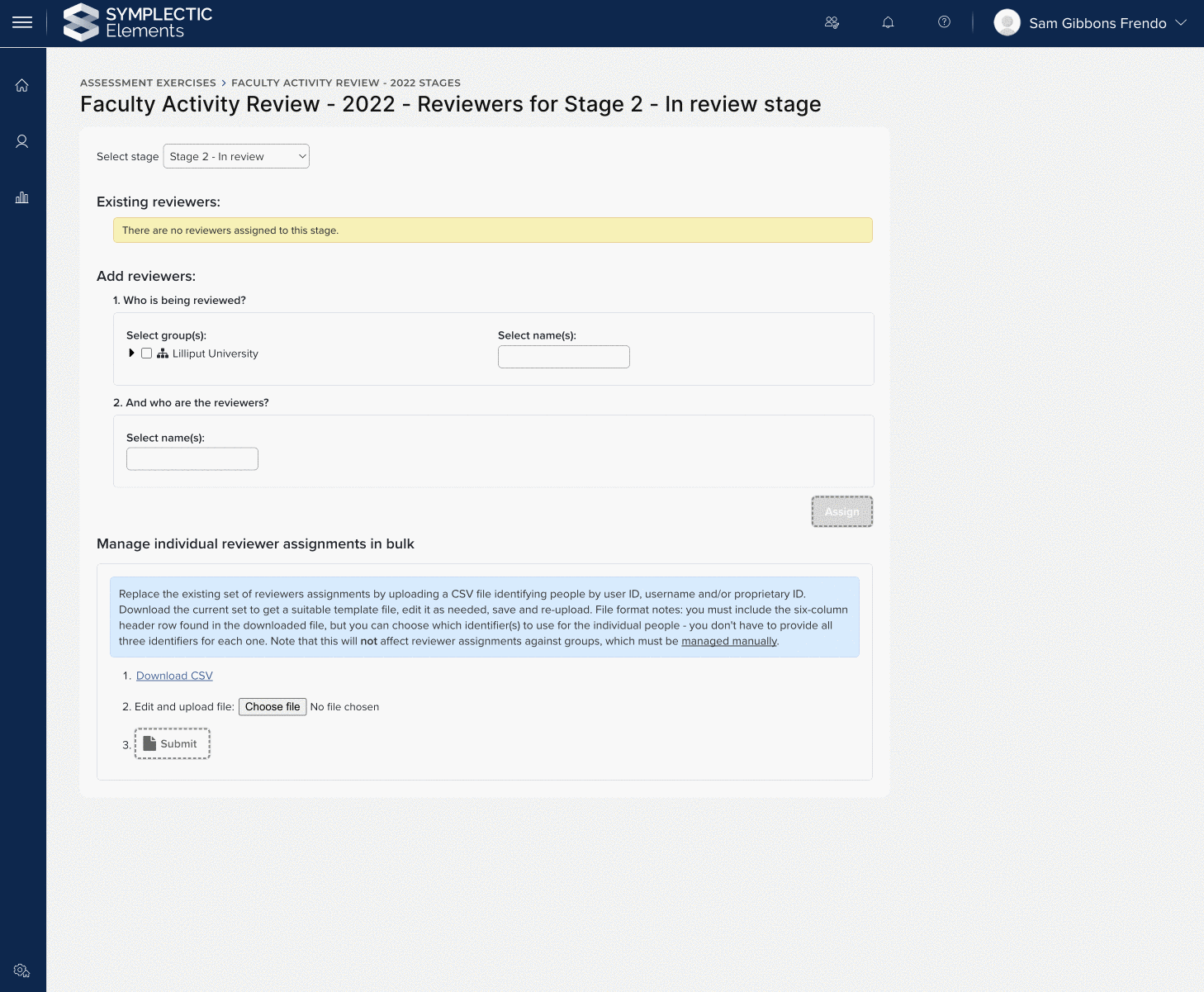 Image: Administrators can bulk upload individual reviewer assignments, as well as remove individual reviewers from assignments.