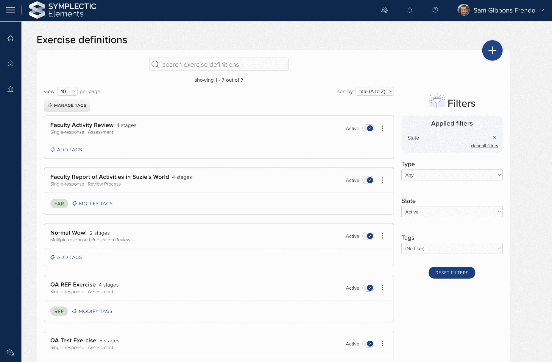 Image: The redesigned ‘My [Exercises]’ page provides filter, sorting and searching, meaning users can quickly find the Exercise form they are looking for.