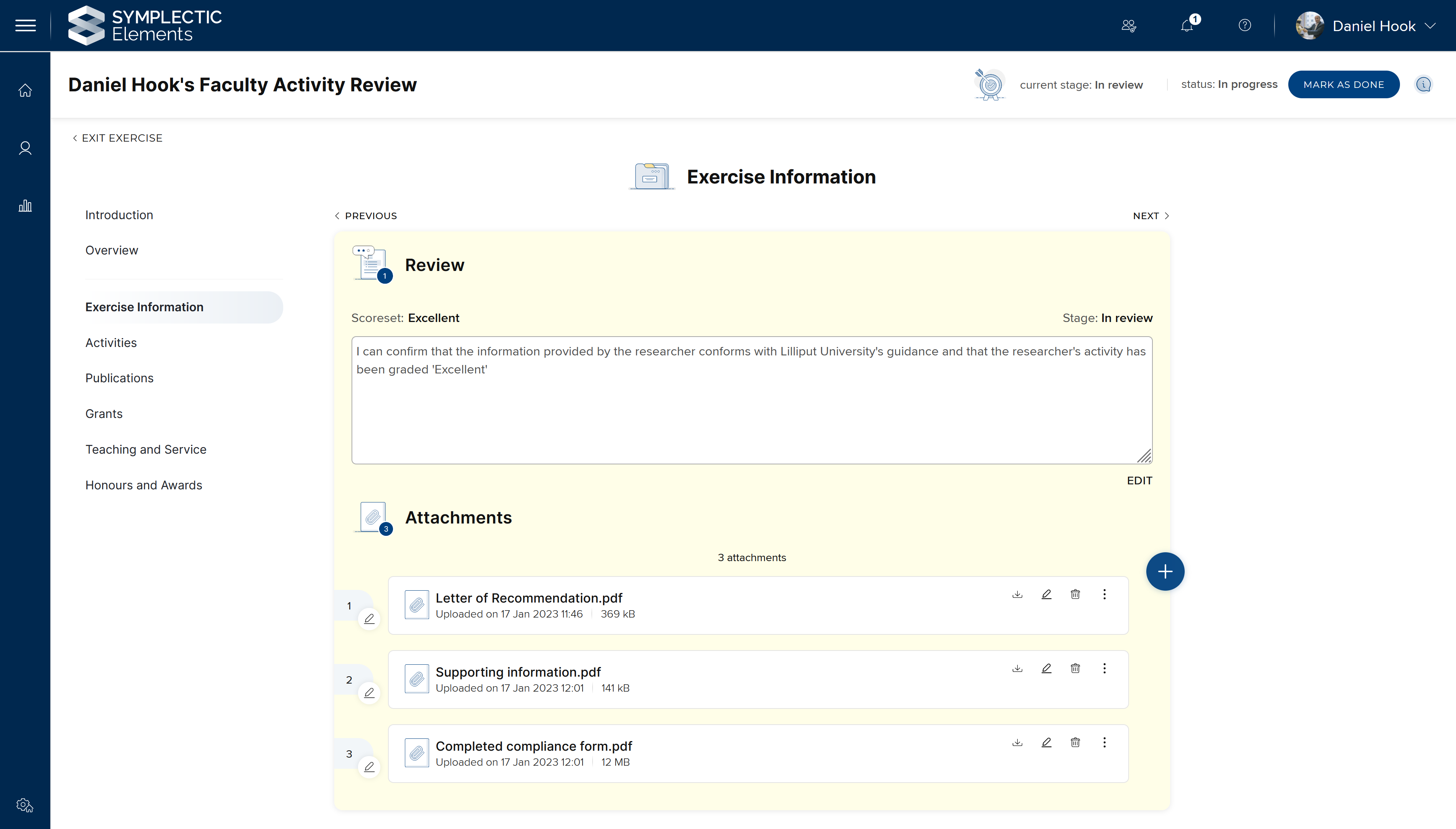The ability for researchers and reviewers to add attachments is an important way of capturing a broad range of information in the Assessment Module. To reduce workflow interruption and help streamline the review and approval workflow, we have introduced the ability to view PDFs within the Assessment Exercise. Researchers and reviewers can view the PDF at a click of a button, saving time and reducing the need to download data unnecessarily.