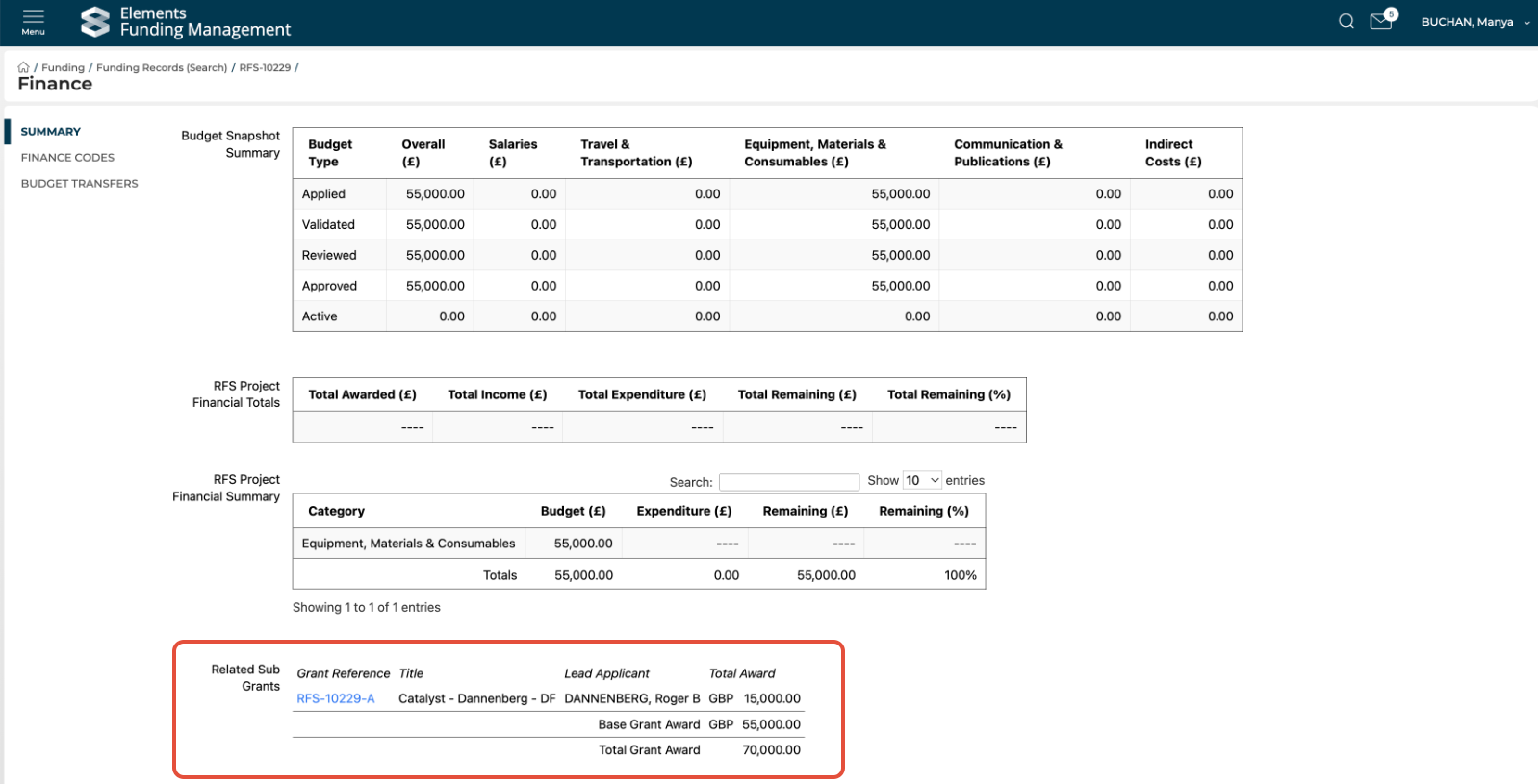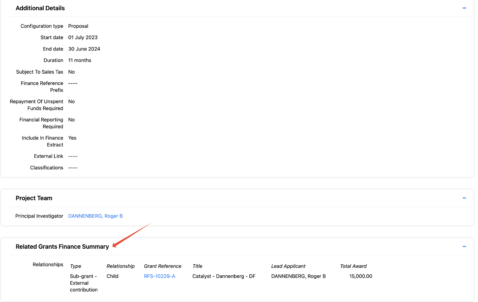 The ability to create related sub-grants is restricted to System Administrators and Research Funding Administrators.