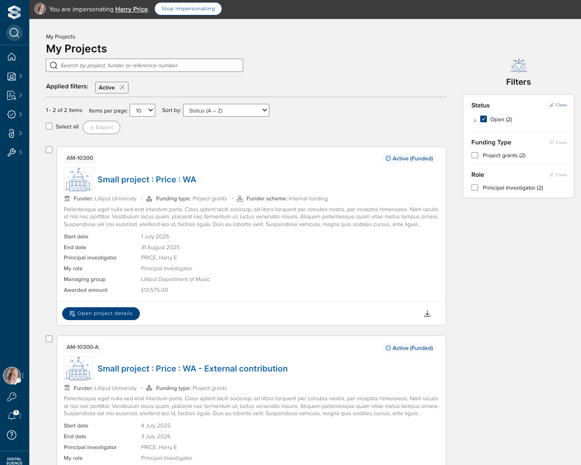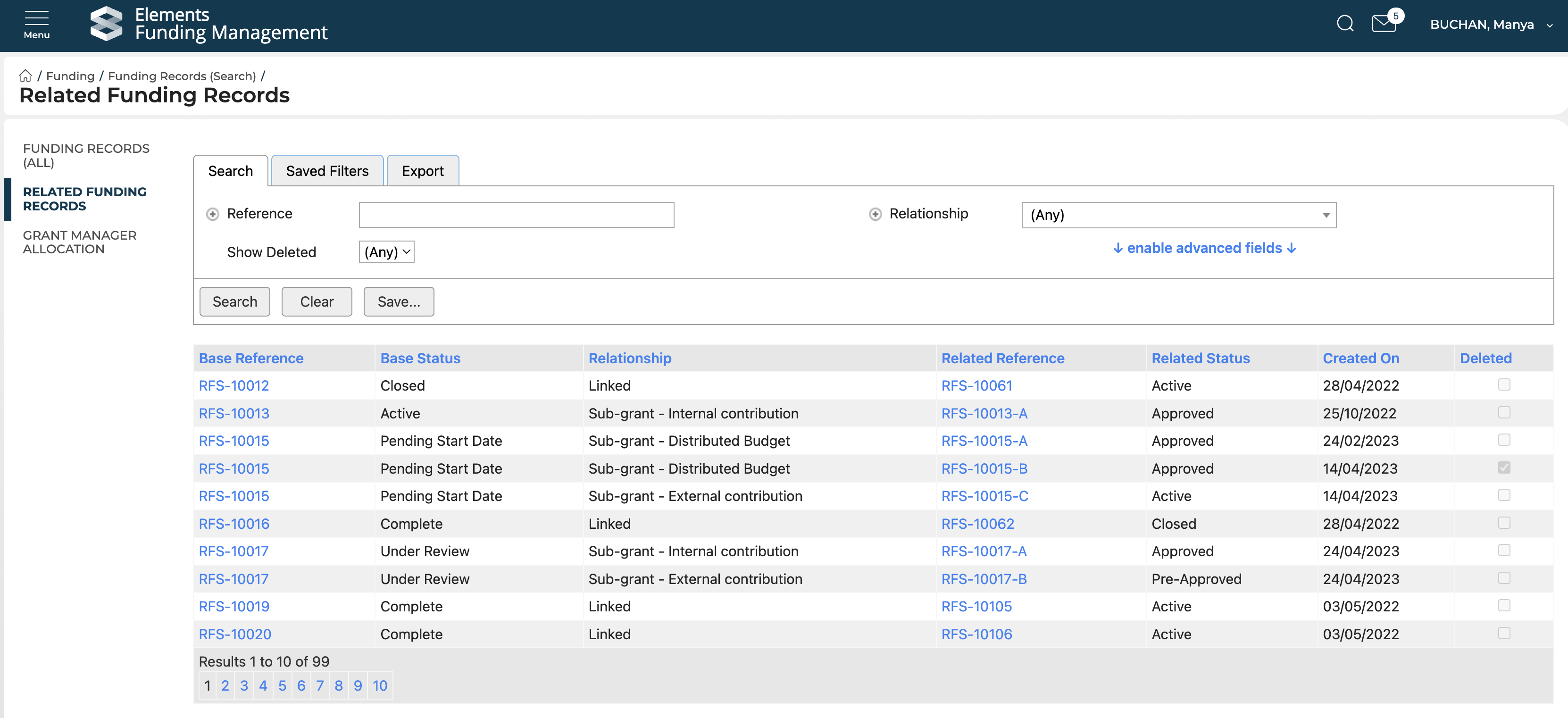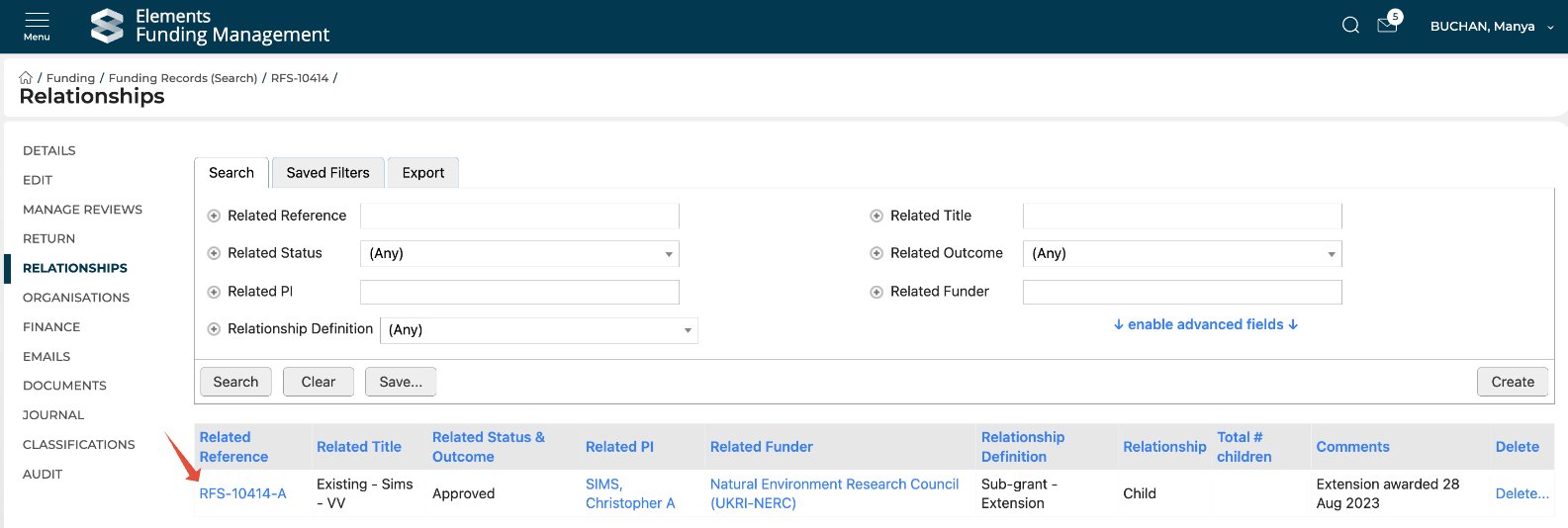 All relationships in Awards Management can also be viewed via Funding records (All) > Related Funding Records: